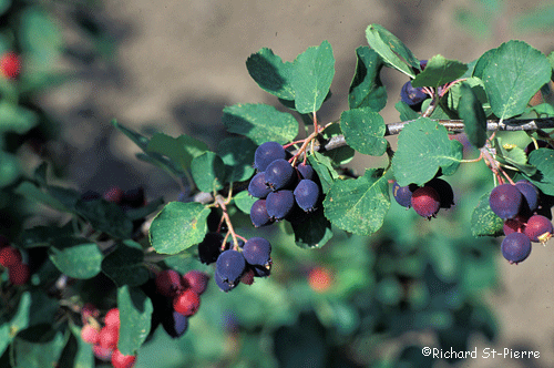 A large shrub with white flowers and delicious blue-black berries. Also known as Juneberry and Saskatoon. Berries are firm and hold their shape in baking. Native to parts of Alaska.